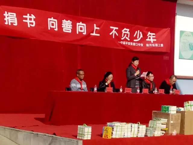 捐书仪式上,经开区团工委书记徐佩发表了讲话。来自河北建筑工程学院的学生代表讲述了自己克服身体缺陷并努力奋斗的自强故事,为大家传递以饮水思源为动力,以励志成才为目标的正能量。
