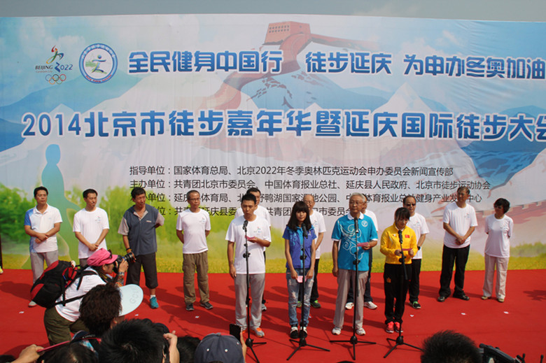 2014北京徒步嘉年华暨延庆国际徒步大会以“徒步延庆·为申办冬奥加油”为主题,共青团北京市委员会、延庆县人民政府、北京市徒步运动协会主办,延庆县体育局承办,共青团延庆县委员会、共青团张家口市委员会协办,设5公里和20公里两条徒步路线。