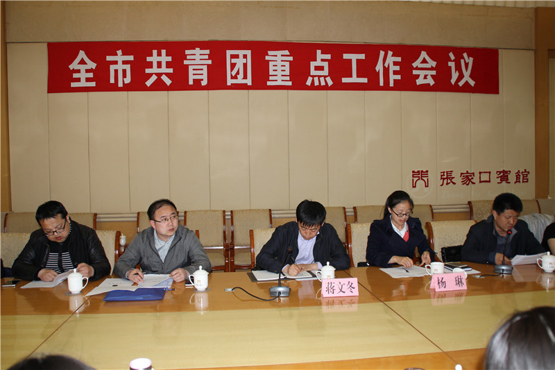 4月11日下午,2016年全市共青团重点工作部署会议在张家口宾馆召开。会议传达了共青团河北省委十四届五次全会精神,围绕市委、市政府战略布局和共青团工作主业安排部署了2016年重点任务。团市委副书记杨琳主持会议,团市委副书记蒋文冬作重要讲话。全市各团县区委书记、市直属学校团委书记40余人参加会议。