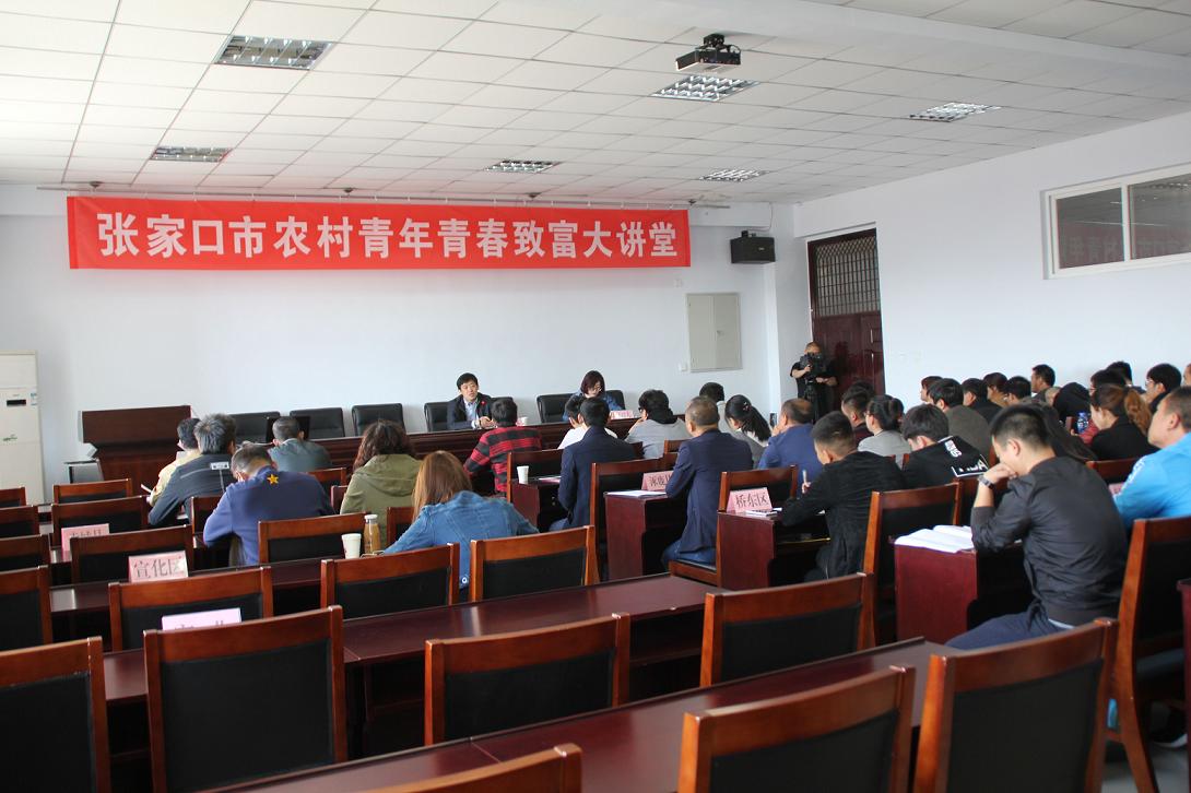 4月6日,为深入贯彻市第十一次党代会精神,落实市委关于脱贫攻坚工作的重要部署,积极发挥共青团组织化和社会化动员优势,广泛整合社会资源,共青团张家口市委在张家口广播电视大学会议室开展全市第一期农村青年“青春致富大讲堂”培训。团市委书记蒋文冬参加了开班仪式并作讲话。参加此次培训的有来自各县区的农村青年致富带头人,以及深度贫困县养殖创业的青年近百人。
