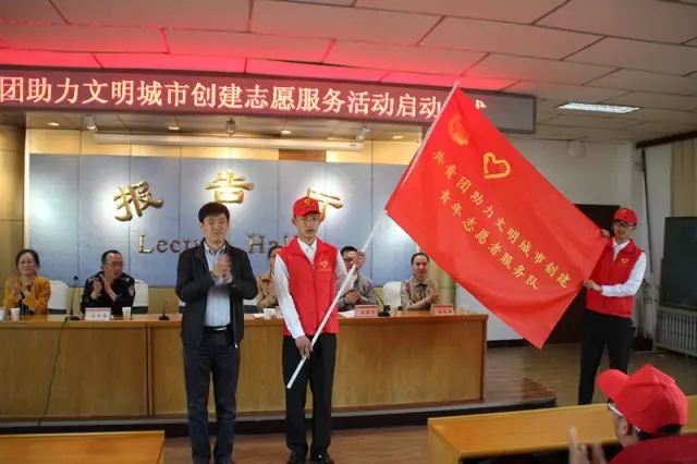为创建文明城市志愿者服务队授旗