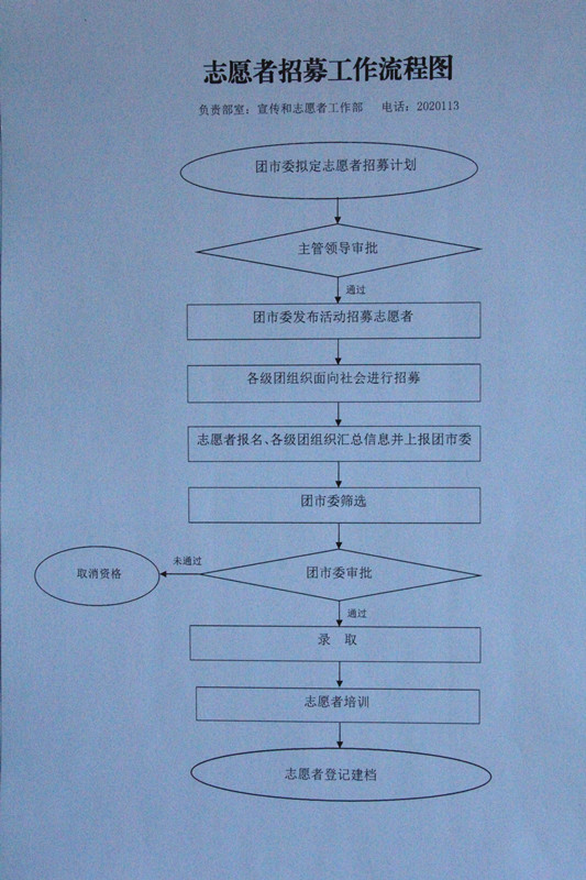 形成了完善的志愿者招募体系,过去招募志愿者团市委报名、审核、培训等等相关工作一把抓,申请人只能到团市委报名。目前申请人可在团市委下属的各县区、企事业单位的团组织报名申请成为志愿者,为申请人提供了便利。团市委只负责志愿者审核及培训,减少了报名环节,大大提高了办事效率。