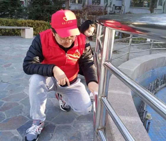志愿者们还对周围的广告牌和栏杆进行擦拭,给大家营造一个舒适美丽的环境。