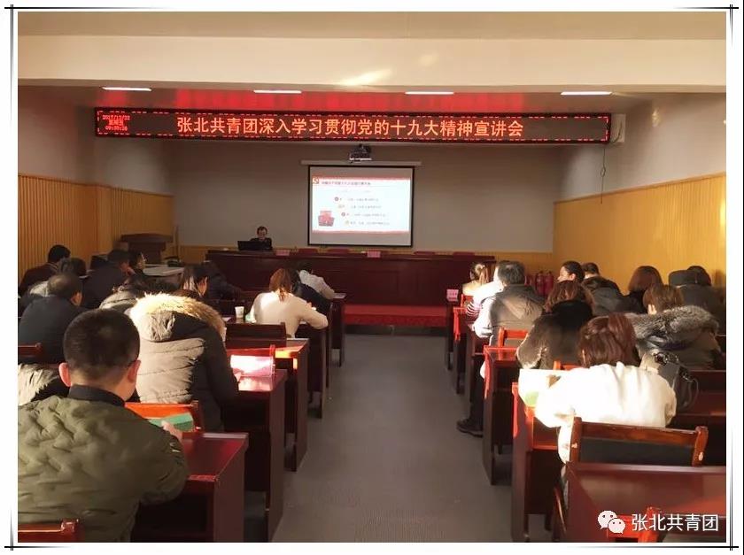 12月22日上午,张北团县委在德智中学召开了学习贯彻党的十九大精神主题宣讲会,大会特邀请了县委宣传部常务副部长杜永库对十九大精神进行宣讲,团县委书记武岩主持会议。18个乡镇专职团委副书记、全县中小学团干部以及县直各单位团组织负责人,共60余人参加了会议。