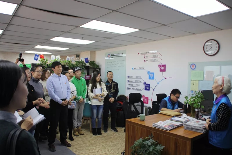 在指导中心林俊杰老师的带领、讲解下,一行人先后参观了北京市志愿服务文化长廊、北京市志愿服务指导中心研究培训部、项目发展部、宣传部,观看北京市志愿服务宣传片,特别是在宣传部聆听82岁五星志愿者蔡秀兰参与志愿服务感受和对广大青年的殷切希望。随后召开交流座谈会,北京志愿服务指导中心刘金芝老师介绍北京市志愿服务联合会发展历程、队伍建设、服务项目、运行管理、志愿文化及重要经验做法,张家口服务2008年北京夏奥会志愿者陈燕婴谈了参加奥运志愿服务感受,张家口团市委志愿者部负责同志介绍张家口市青年志愿服务情况,双方围绕志愿服务合作交流、机制和队伍建设、培训管理等问题进行深入交流。