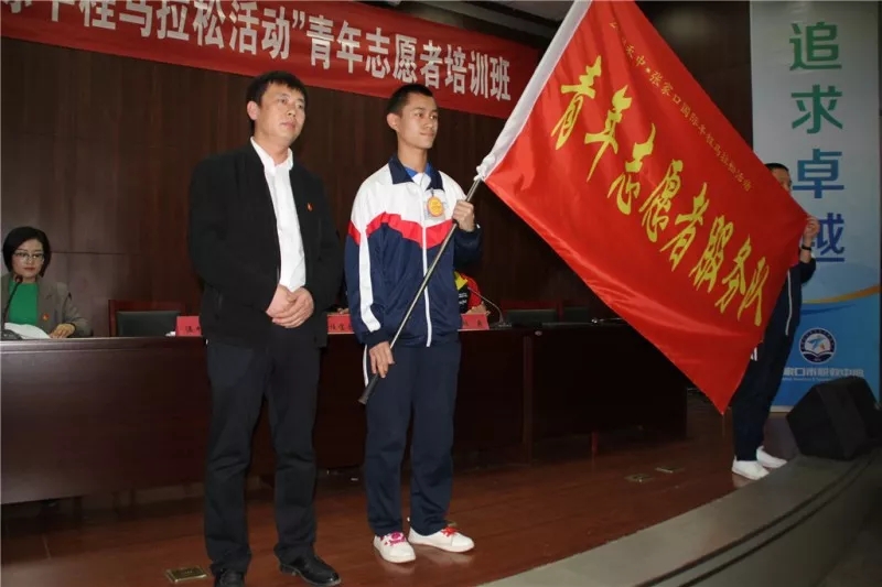 动员大会上,团市委副书记温旭春作动员讲话,他表示此次马拉松活动规模大,范围广,规格高,对志愿者的服务质量提出了极高的要求。因此,志愿者们必须认识到本次志愿服务工作的重要性,争做培训和服务工作中的表率和楷模。随后,志愿者代表进行表态发言,温书记向志愿者代表授旗,与会领导向志愿者代表颁发志愿服务荣誉证书。