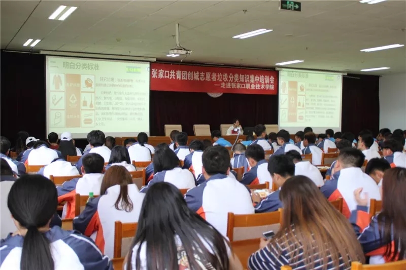 为进一步提高青年志愿者的服务技能,5月14日,张家口团市委在职业技术学院组织“创城志愿者垃圾分类知识集中培训会”,邀请专业老师为广大志愿者认真讲授垃圾分类知识,400多名志愿者参加学习。