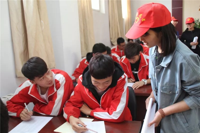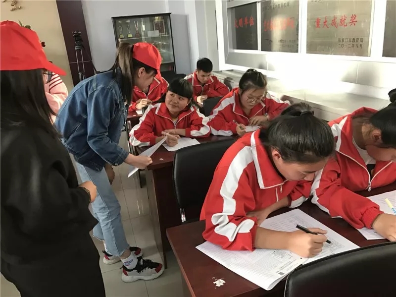 活动开始前,志愿者们为现场考生发放心理调查问卷,倾听他们的诉求,了解他们的所需,并以同龄人的视角与他们互动交流,解惑答疑。