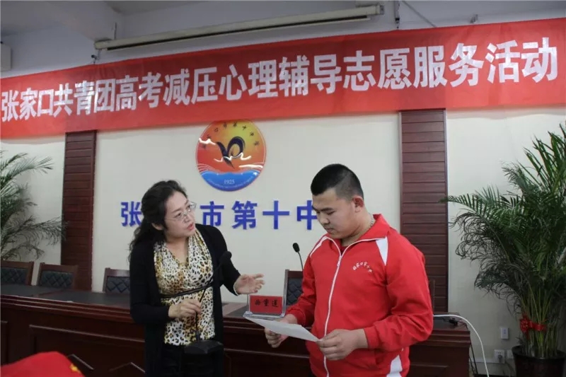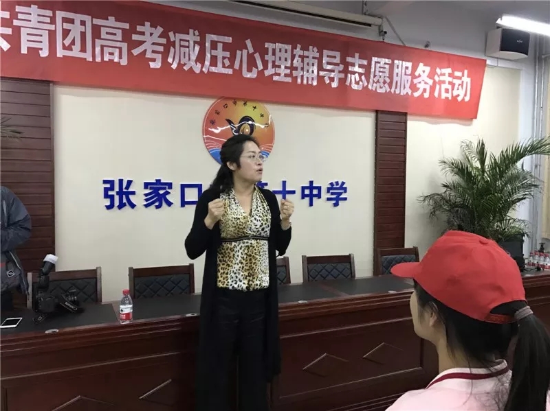 为深入贯彻落实《河北省中长期青年发展规划(2018-2025年)》,进一步加强对青年的人文关怀和心理疏导,尤其在学生心理健康方面,注重引入社会组织力量,加强对青年心理健康问题的研究分析,并采取有效措施缓解青年在学业、就业等方面的压力,促进青年身心和谐发展。在一年一度的高考即将到来之际,5月22日,张家口团市委在张家口市第十中学开展高考减压心理辅导志愿服务活动,邀请市心理学会曲重莲老师和张家口学院心理社团的志愿者们为现场100多名高考考生进行心理辅导,旨在缓解考生的考前心理压力,及时识别学生心理问题,降低青年心理疾病发生率。