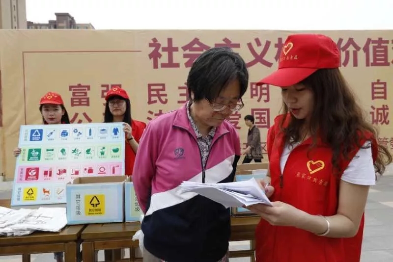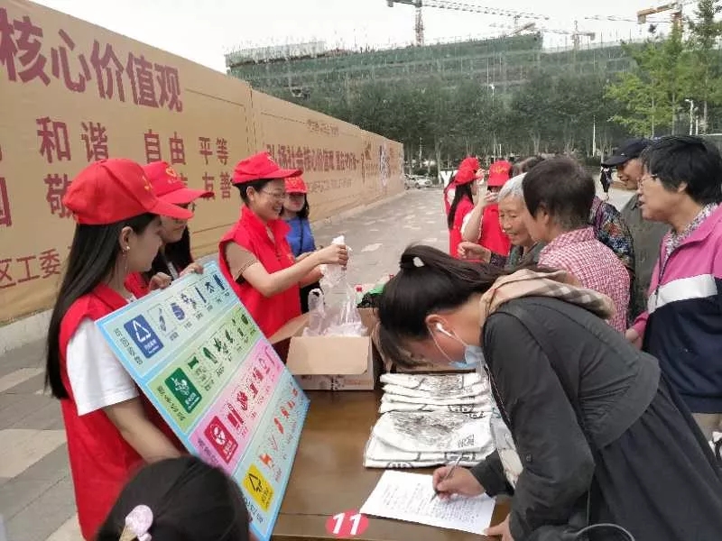 创城志愿者垃圾分类知识集中培训后,为切实将学到的知识转化为服务的本领,让培训发挥出实实在在的效果,5月26日上午,张家口团市委组织张家口职业技术学院应用外语系、土木工程系及校青协的志愿者们深入到金鹰花园小区、奥林星城小区、福源里小区开展“垃圾分类从我做起”主题宣导示范志愿服务活动。