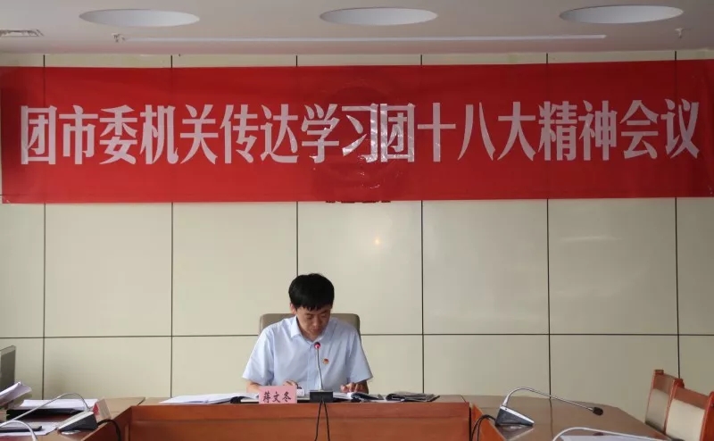 会上,团十八大代表、团市委书记蒋文冬带领大家认真学习了习近平总书记在与团中央新一届领导班子集体谈话时的重要讲话精神,逐字逐句认真学习了王沪宁同志代表党中央在团十八大开幕式上的致词精神,原原本本传达学习了贺军科同志代表团十七届中央委员会所作报告,认真学习了团十八大修改通过的新《团章》,部分机关干部代表做了学习体会发言。