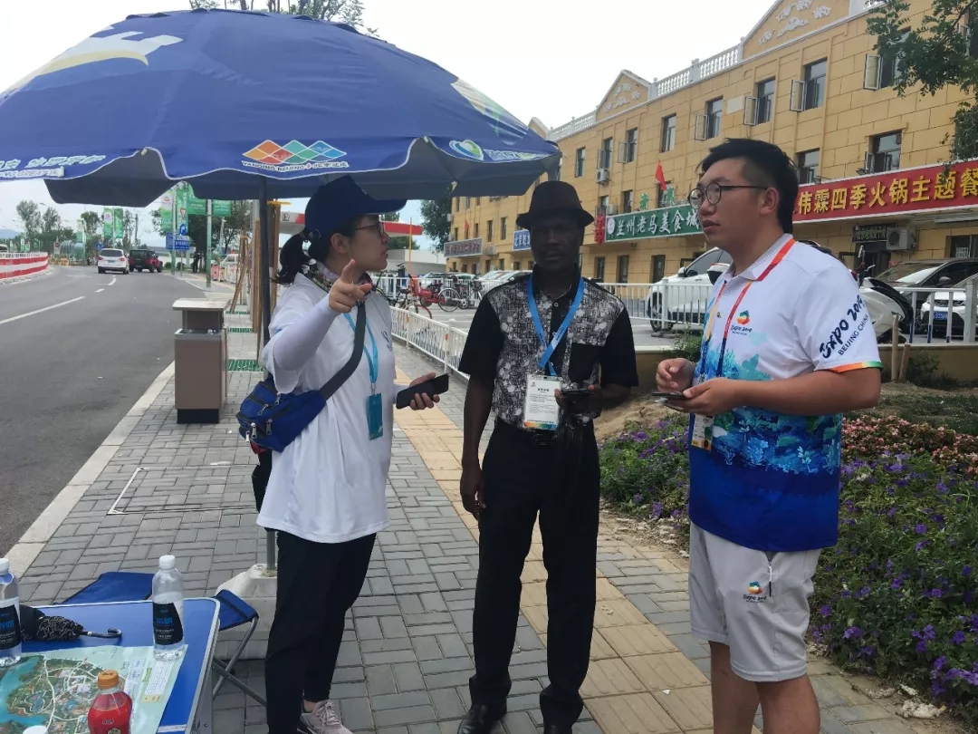 7月3日上午,在园区的2号门外,一家来自西安的游客找到了我市正在园区开展服务的城市志愿者,急切地想要了解去往八达岭长城的交通线路。因为对园区环境的不熟悉,七十多岁的老人已在园区外面寻找了近一个小时。